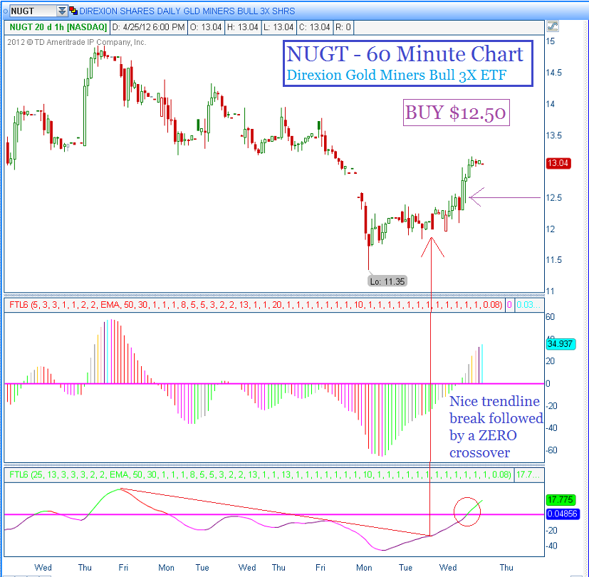 I have been thinking that the mining stocks have become stupid cheap once again, so when I saw some favorable price movement today I decided to load up on Direxion's Gold Miner Bull 3X ETF (NUGT) at a $12.50 purchase price.
